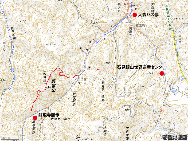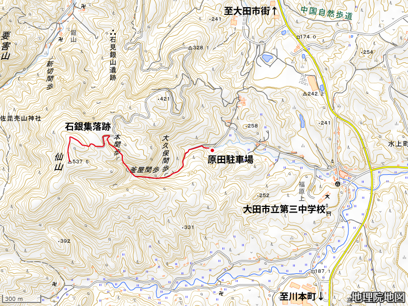 石銀から大森の町並み側の佐毘売山神社付近に至る道もあります。