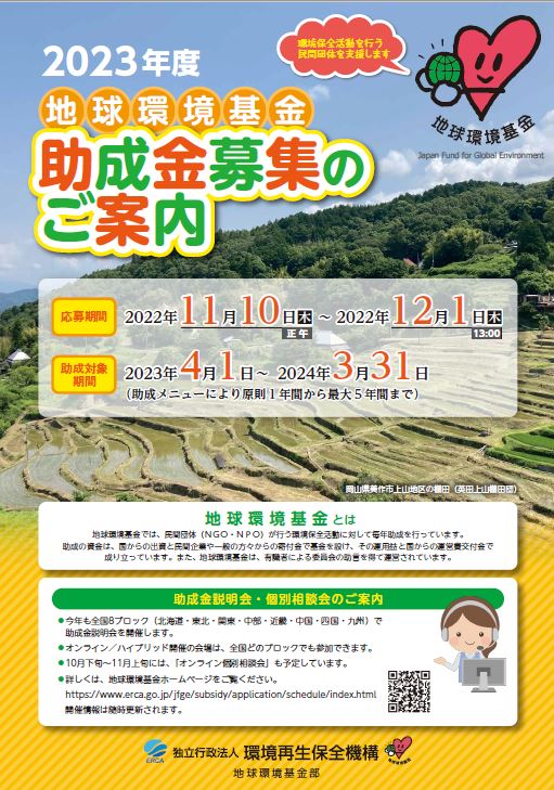 ・2023年度地球環境基金助成金(2022年11/10~12/1募集)