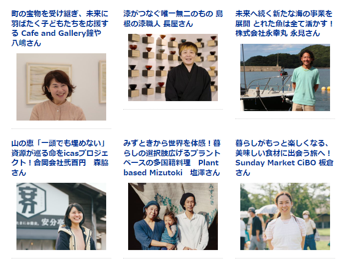 しまねを思いきり楽しみながら、未来へ豊かな資源や縁を繋ぐひとをコラムや5分番組でご紹介。