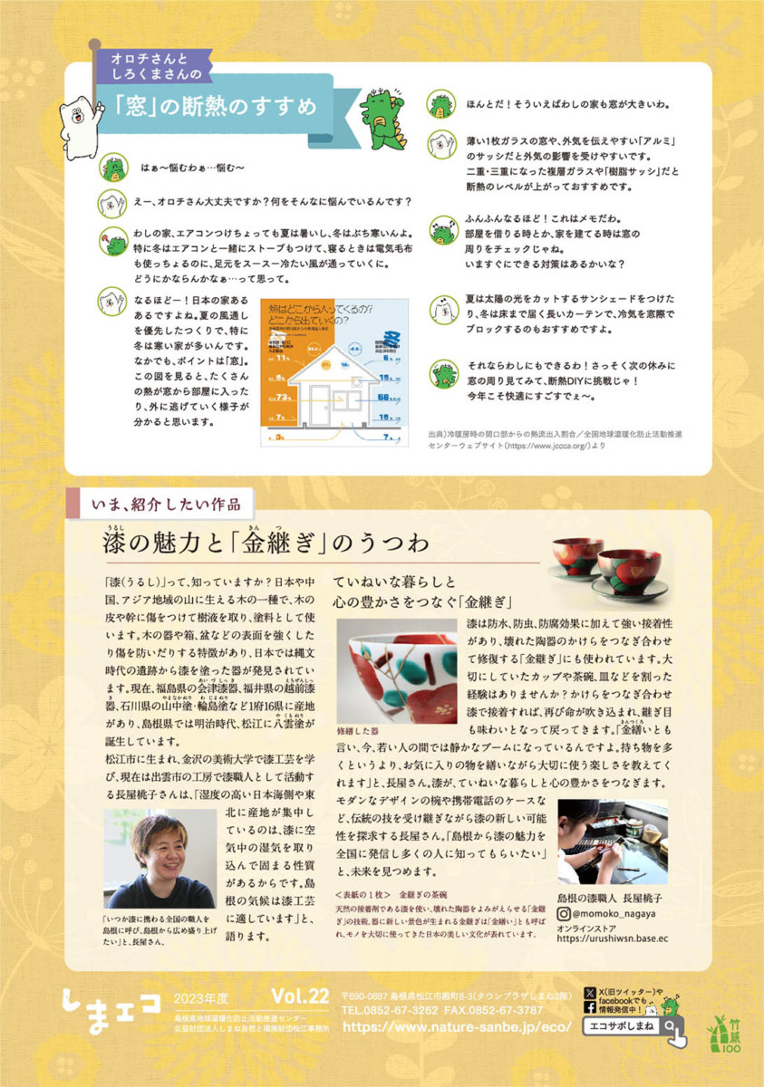 しまねの魅力×暮らしを豊かにするエコやサステナブルを紹介する情報誌「しまエコ」の最新号、バックナンバーをご覧いただけます。