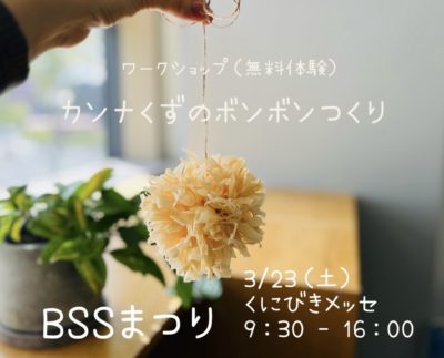 エコサポのブースでは、主に島根県産の木の「カンナくず」を使ったボンボンつくりが無料で体験できます。