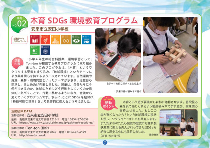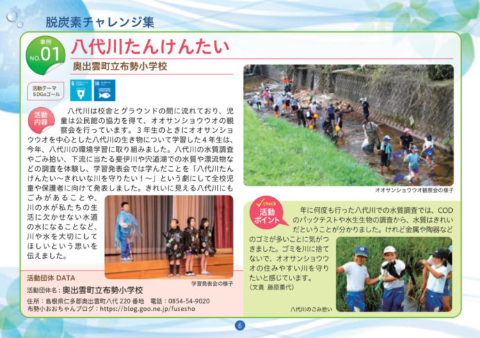 HOME > エコグッズ > しまね脱炭素チャレンジ集~学生編3~(令和3年度発行) 貸出機材詳細 提供冊子 品名 しまね脱炭素チャレンジ集~学生編3~(令和3年度発行) 概要 未来の島根を担う県内の児童・生徒・学生が取り組む地域活動をSDGsやゼロカーボンの視点から紹介しています。全10事例紹介。内容はHP「チラシ・パンフレット」 から見ることができます。 個数 小冊子/縦15㎝×横21㎝/約19ページ ギャラリー