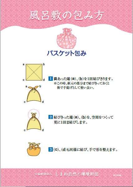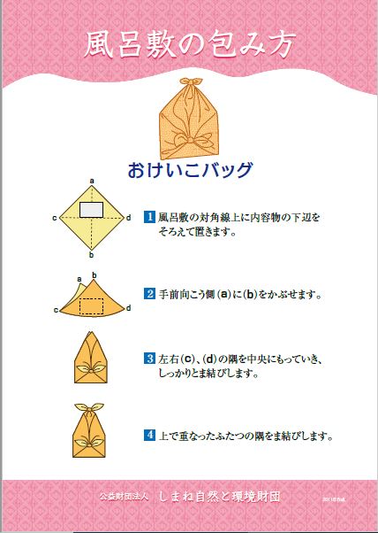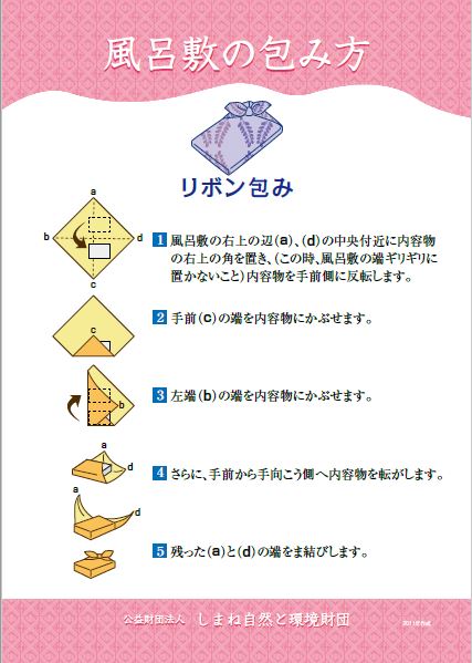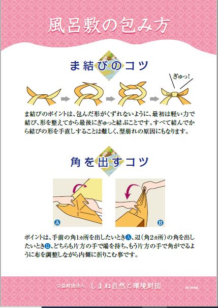 HOME > エコグッズ > 7.風呂敷の包み方タペストリー 貸出機材詳細 タペストリー 品名 7.風呂敷の包み方タペストリー 概要 エコな文化としてあらためて見直されている「風呂敷」。風呂敷の由来から、包む物に合わせた、多様な包み方を紹介しています。 個数 タペストリー型 全10枚/A2 保有2組 ギャラリー