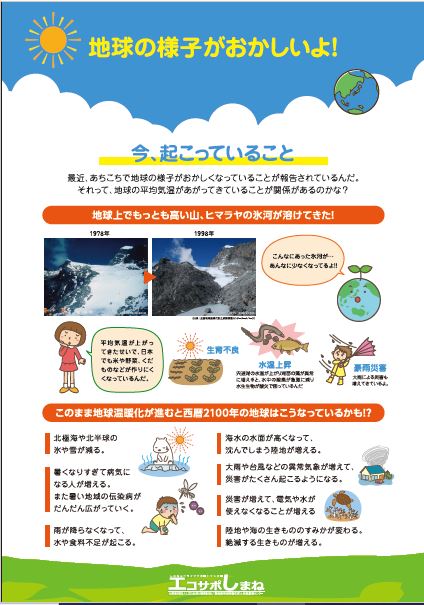 HOME > エコグッズ > 11.子供向け温暖化防止タペストリー 貸出機材詳細 パネル 品名 11.子供向け温暖化防止タペストリー 概要 子供向けに易しく地球温暖化や温室効果ガス、私達にできることを紹介しています。 個数 タペストリー型 5枚/A2 所有2組 ギャラリー