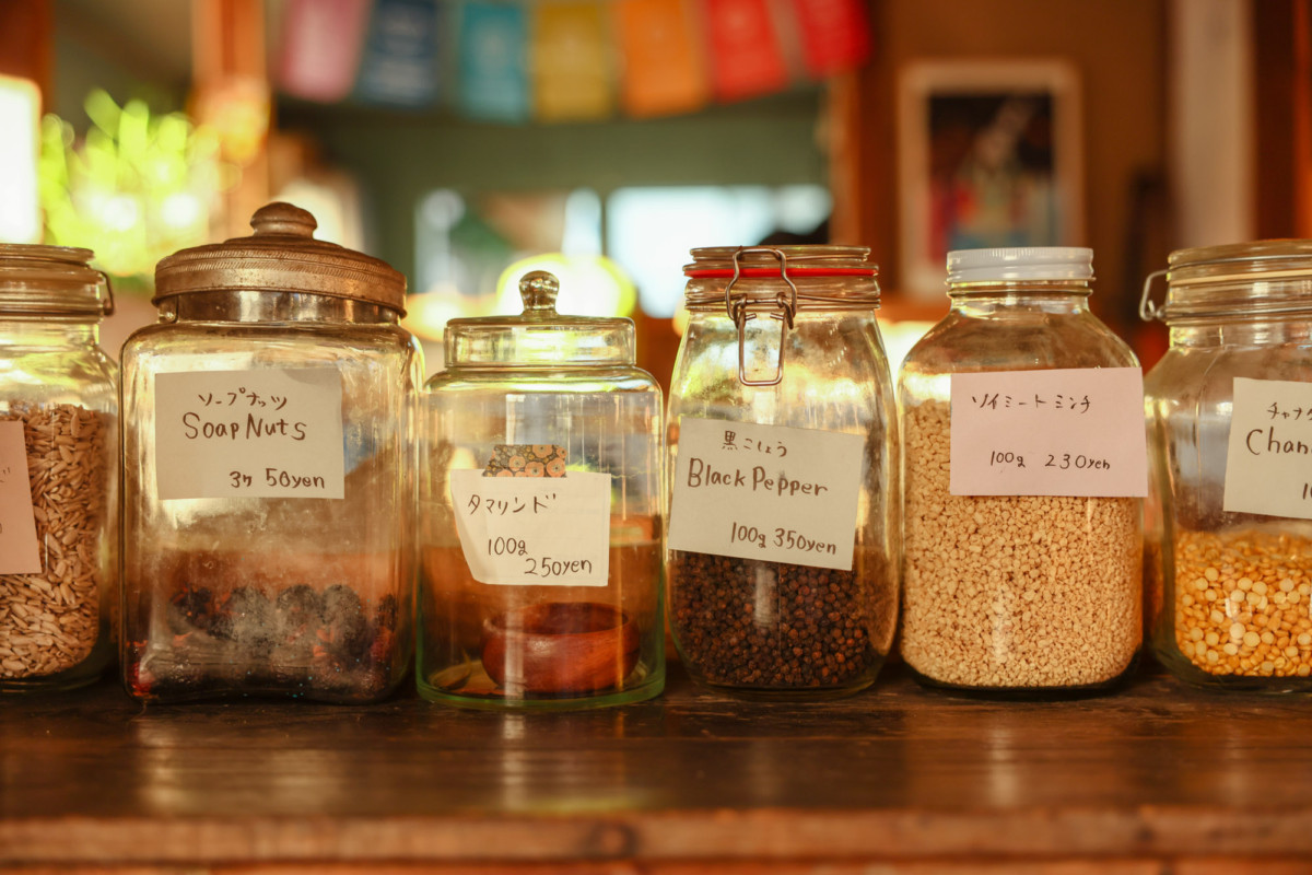 お店に容器を持参したり、量り売りをすることで、ごみを少なくする暮らしを選択することもできると思います。
