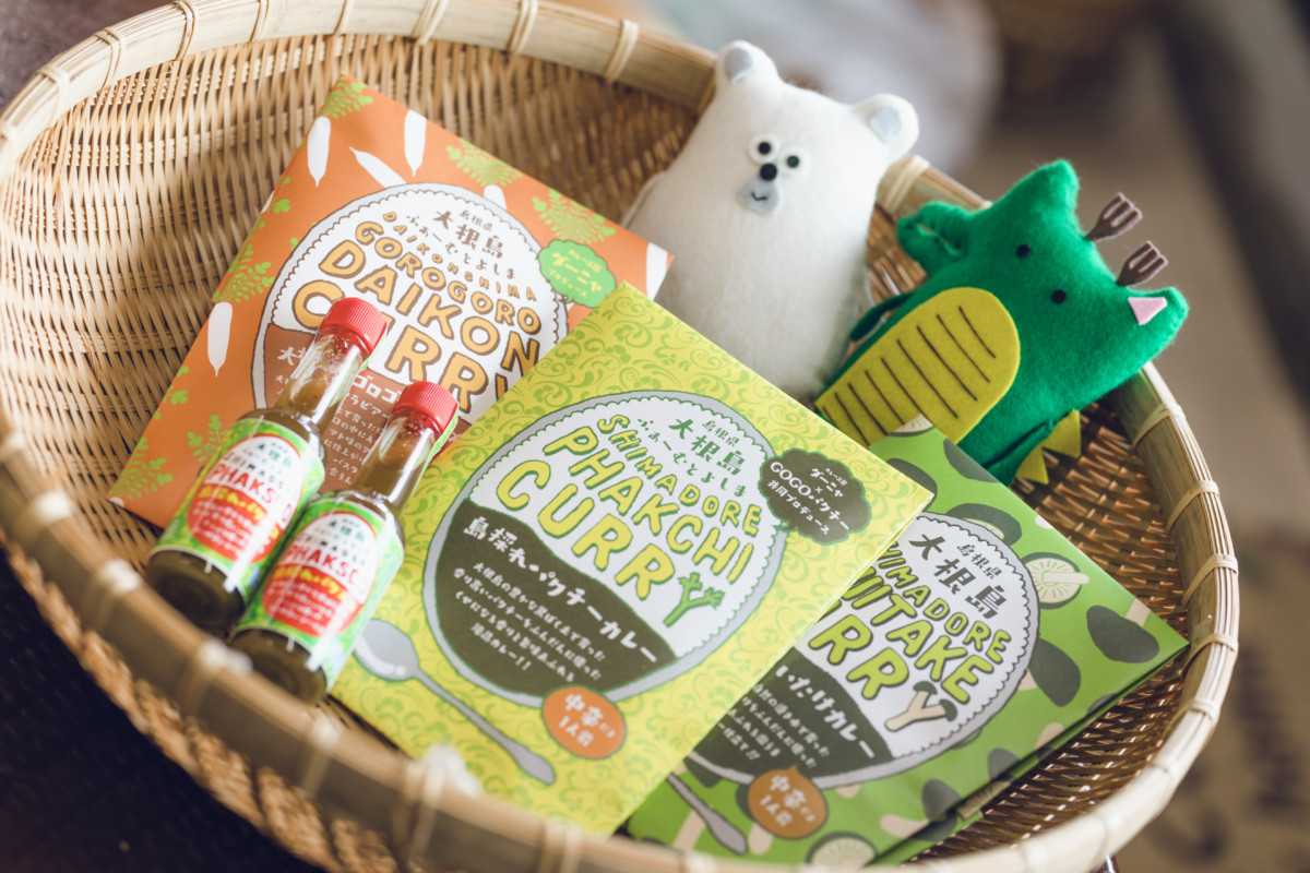 パクチーカレーには、松江市の地域おこし協力隊と一緒に島中をサイクリングして作った地図を同梱しています。