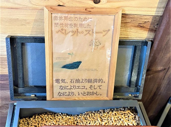 間伐材をつかったペレットストーブを導入したのですが、これだけだと寒いのでエアコンもつけています。