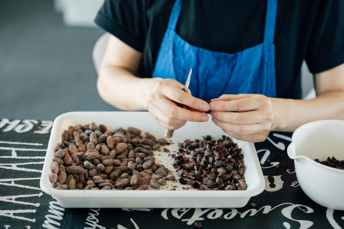 NANAIROのチョコレートはカカオ豆の買い付けから選別、焙煎、チョコレートバーへの加工、包装まで、全ての工程を自社工房で行う Bean to Bar(ビーントゥバー)という方法で作っています。