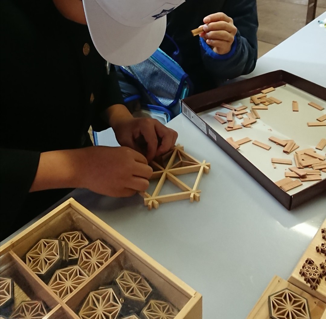 学校などで組子細工を通した「木育」を続けています。
