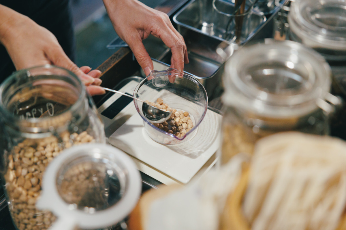 豆類・スパイス・天然洗剤は好きなものを必要な分だけ量って買えるようになっています。