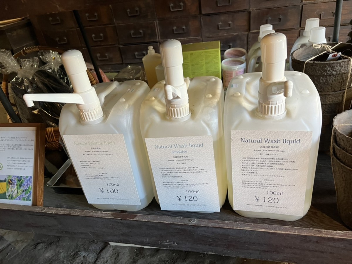 お店にも空容器の用意がありますが、観光でこられた方が手に持っているペットボトルのお水を飲みきって「これに洗剤詰めるよ!」と言われたり(笑)。