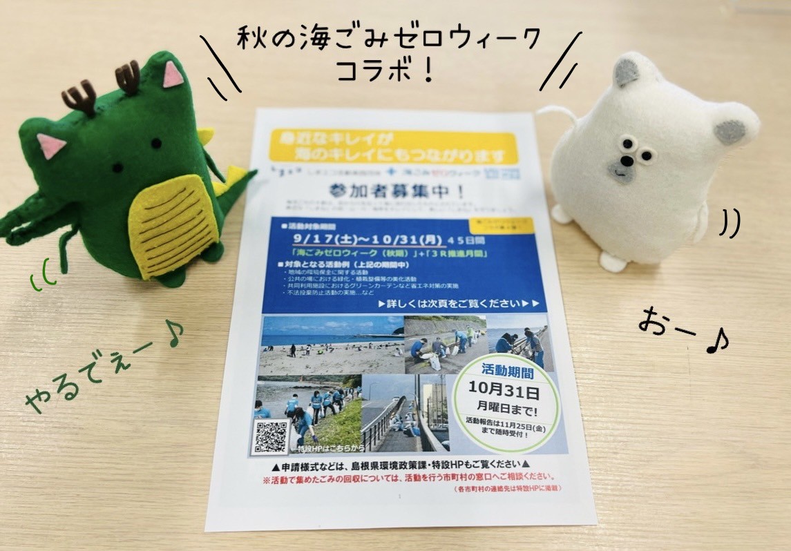 島根県では秋の海ごみゼロウィークとコラボした「しまエコ活動実践団体」を募集しています。