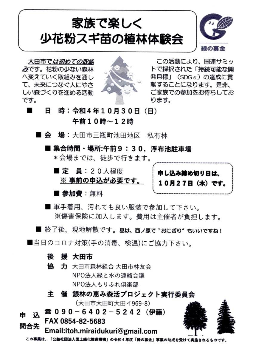 大田市では初の取り組み!花粉の少ない森林へ変えながら、未来へ繋がる人に優しい森づくりを進めます。