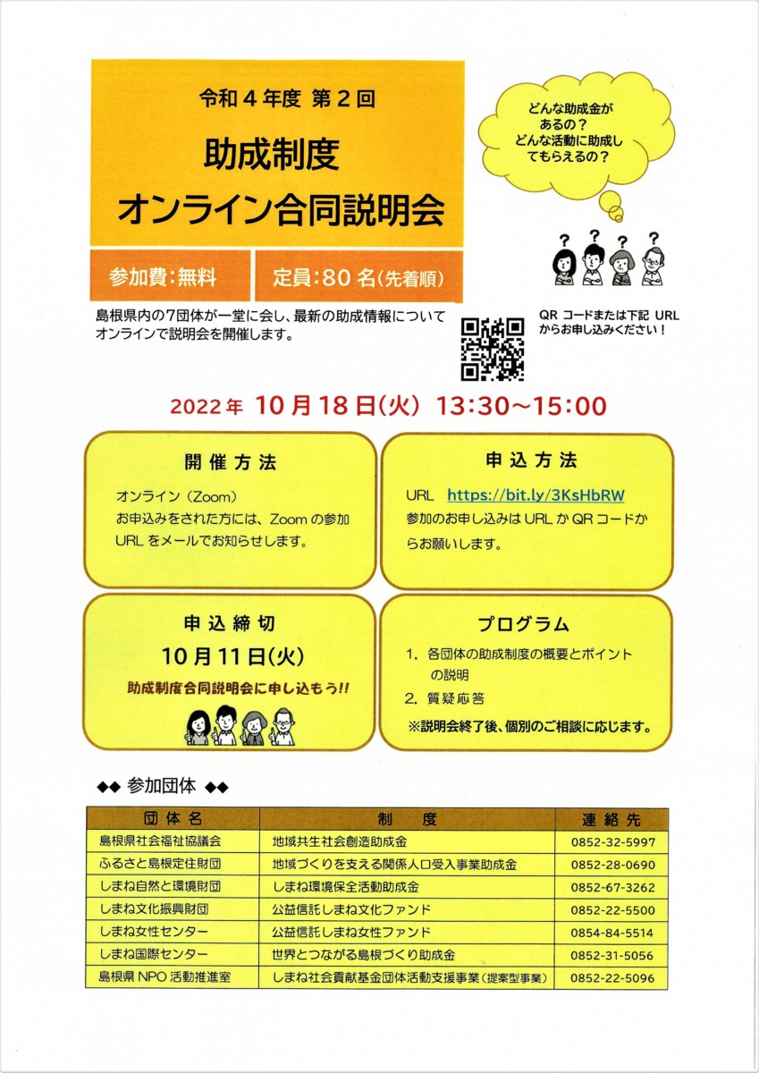 1.10/18(火)「令和4年度 第2回 助成制度オンライン合同説明会」