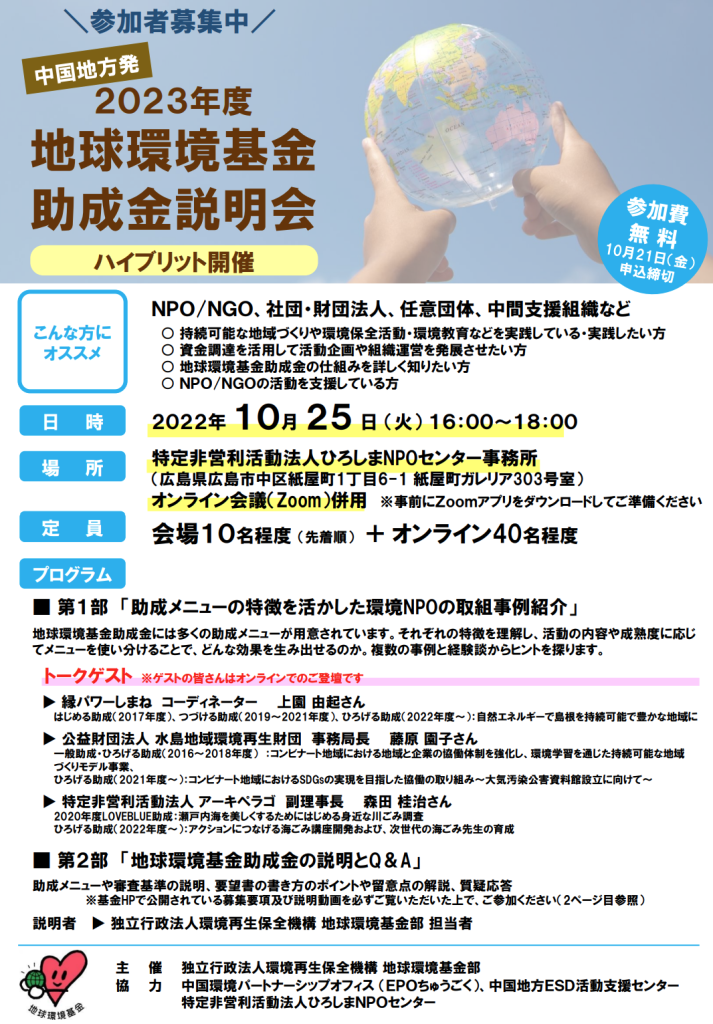 3.10/25(火) 「2023年度 地球環境基金助成金 中国地域説明会」
