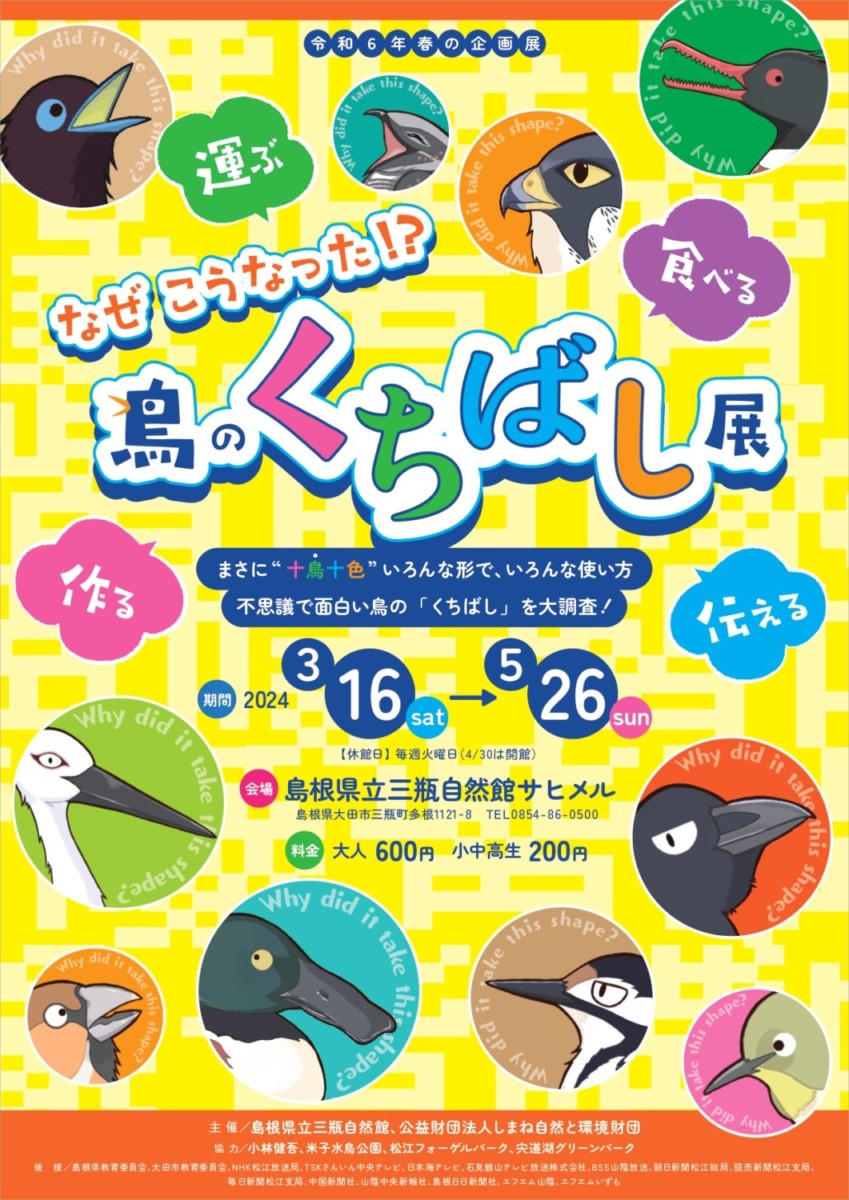 三瓶自然館サヒメルでは、春の企画展「なぜこうなった!?鳥のくちばし展」を開催中です𓅯 ⸒⸒