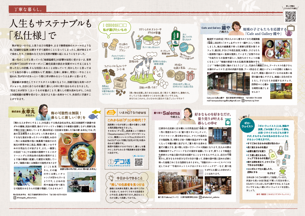 しまねの魅力×暮らしを豊かにするエコやサステナブルを紹介する情報冊子「しまエコ」シリーズ。