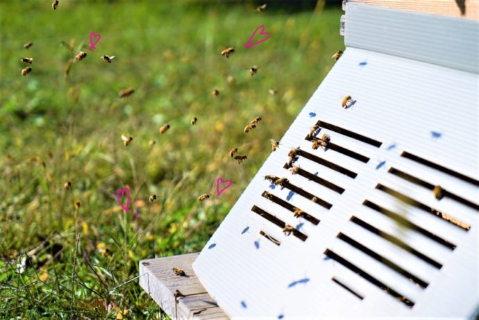 この日元気にお仕事していたみつばち達は、もうすぐ冬を越すため巣箱に籠もるそう。
