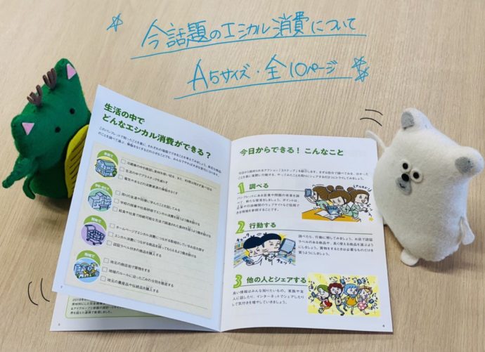 『みんなの未来にエシカル消費』はA5サイズ、全10ページのカラー冊子です。