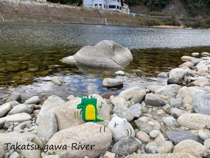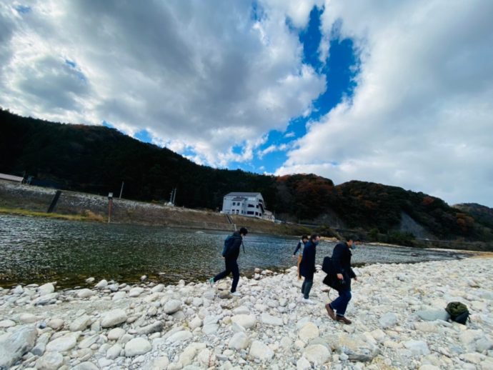 それが未来の地域にも自然と繋がります。(写真は高津川で大はしゃぎする取材チーム(全員大人))