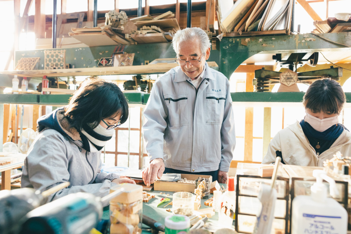 現在、舟木木工所では若い職人が技術を継承するため、日々制作に励むと共に、アクセサリーや自由に作るキット商品、木育玩具など時代に寄り添った新たなデザインを生み出し、私たちの身近に伝統の魅力を運んでいます。
