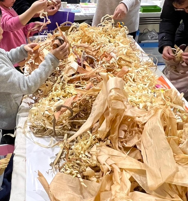 「カンナくずのボンボンつくり」体験を行い