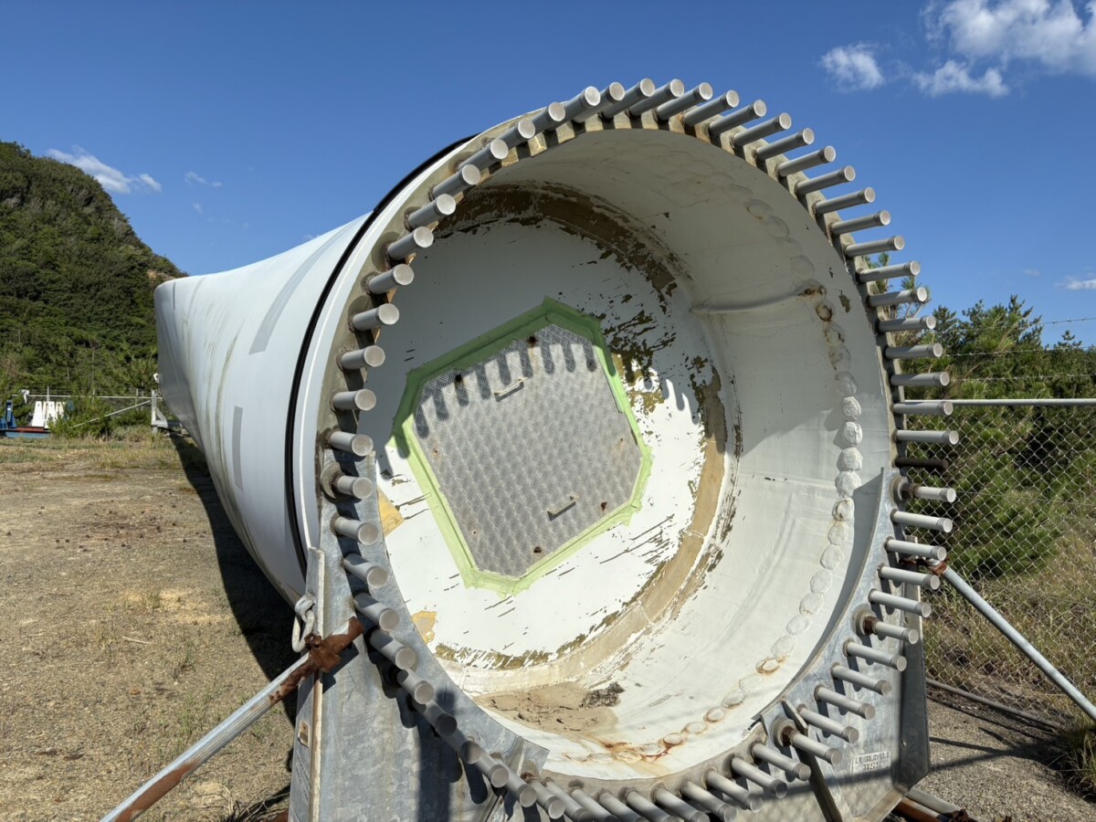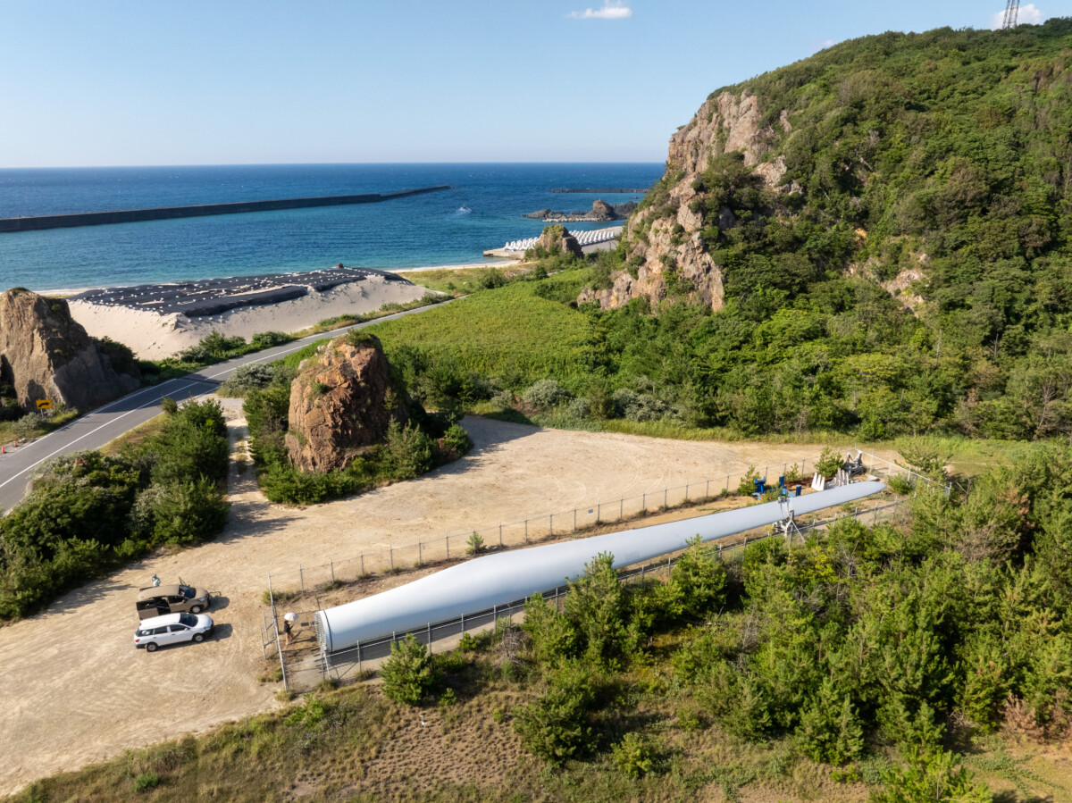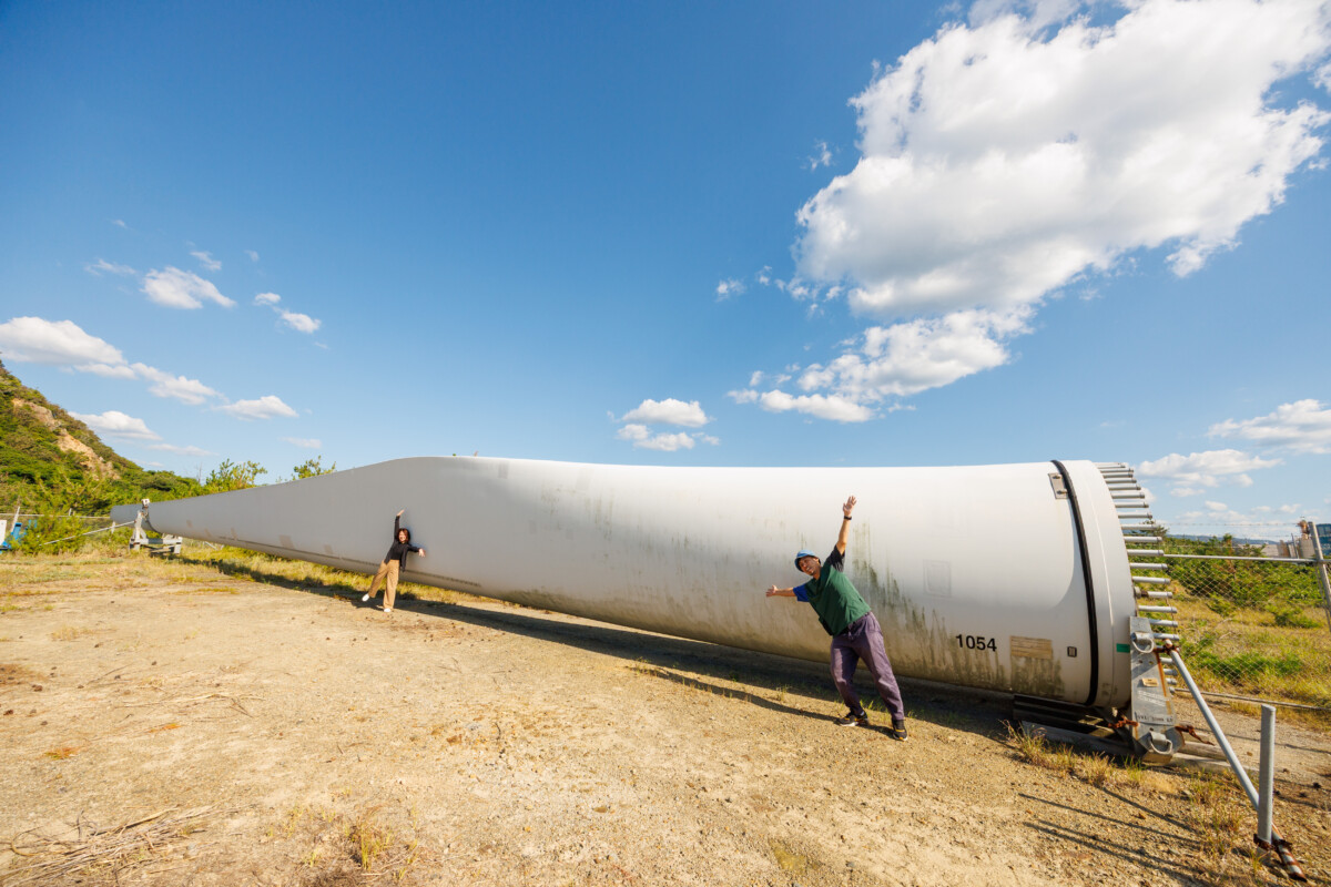 今回の取材では、江津市内の浜辺に保管された交換用ブレードも見学させていただきました。