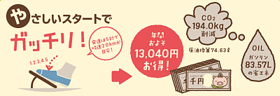 ・CO2および原油の年間削減量は、2,000ccの普通乗用車が年間10,000km走行した場合に、平均燃費を11.6km/リットルとして、計算されています。