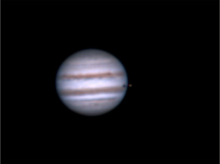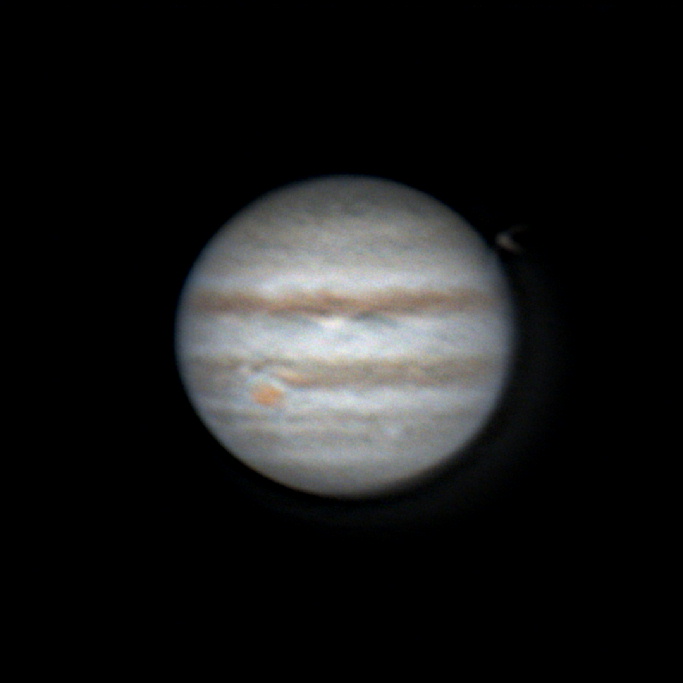 望遠鏡で木星を観察すると,衛星やその影が木星面を横切る現象を見ることができます.2026年1月18日の夜は快晴で22時20分ごろに木星に望遠鏡を向けると,木星のすぐ近くにイオの本体,そして木星面はイオの影が見えているのを確認することができました.