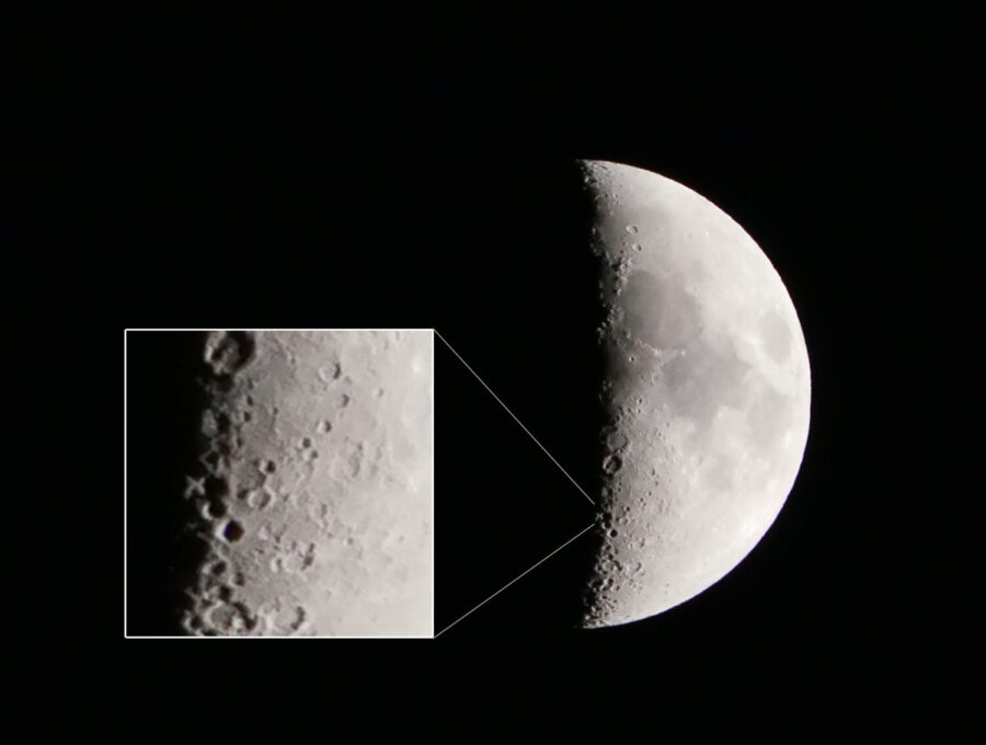 「月面X(エックス)」は、月の欠け際にアルファベットの「X」の字の形が浮かびあがる現象で、上弦前後のタイミングで見られます。その正体は、隣接する3つのクレーターの縁です。この場所に太陽の光が当たり始めたころ、月の影のなかにX字形が見つかります。次に見られるのは4月24日20時50分ごろです。はっきり見ることができるのは年に数回しかありません。お見逃しなく。
