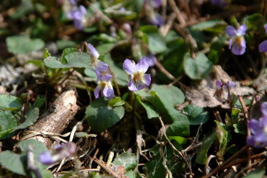 まだまだ枯れ色に覆われる三瓶山。そんな中でも目をこらしてみると、小さな花が春の訪れをつげてくれます。春早くに咲く草花のひとつがアオイスミレ。枯れ葉の中から薄紫色の花を咲かせます。花が小さく地面近くで咲くため、なかなか気付きにくいのですが、見つけるとうれしくなる草花です。