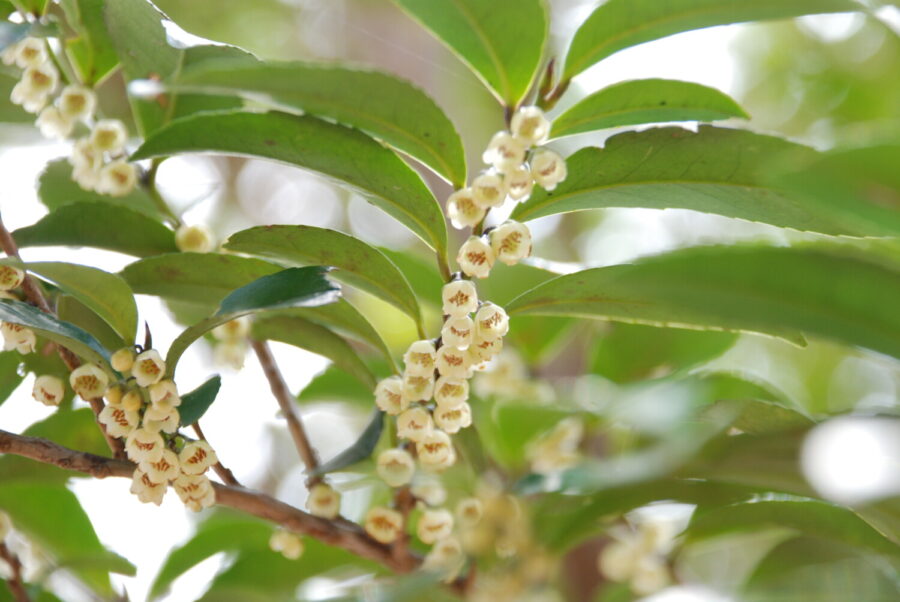 木々の芽吹きはこれから、という初春の森を中を歩くと、どこからともなく独特の匂いが漂ってきます。ほんのり甘い感じもしますが、どちらかというと臭いと感じる人が多いようです。そんな匂いがしたら、近くにヒサカキの花があるかもしれません。この匂い、虫たちを誘っているそうです。