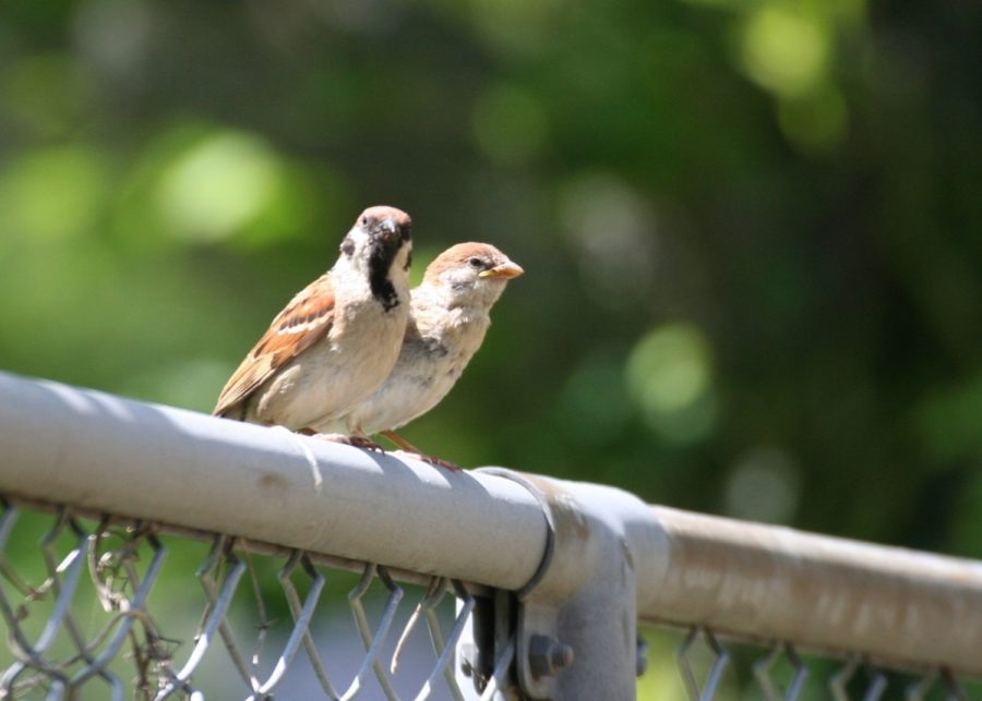 スズメは私たちのもっとも身近に生息する野鳥です。5月上旬には、巣立ちしたヒナに親鳥が食べもの与える姿を見かけることもあります。スズメは雑食性で、小さな虫や植物の種子などを食べます。巣は木の穴や、屋根や電柱などの人工的な構造物の隙間に作ります。近年、スズメが減少したという報告もありますが、民家に巣を作りにくくなったことも要因の一つとされています。スズメのような身近な野鳥が減少してしまうのか?これからもしっかり身近な自然に目を向けていきたいものです。