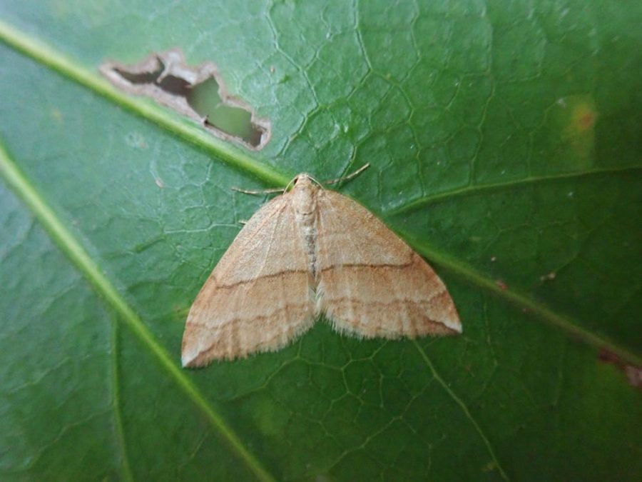 肌寒い日が続き、三瓶山で活動する昆虫もめっきり少なくなりました。そんな頃に見られるようになる昆虫の1つが、蛾の仲間のナカオビアキナミシャクです。大きさは1cm程度、夜に活動し、明かりにも飛んでくることがあります。