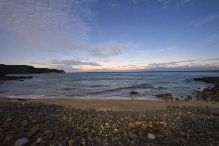 10月16日には大田市内の海岸から、夕焼けの上に彗星の姿を観察することができました。毎年、たくさんの彗星が新たに発見されています。その多くは望遠鏡や双眼鏡がないと観察できない暗い彗星ですが、ときどき、今回のように肉眼で見えるくらい明るくなる彗星もあります。みなさんも明るい彗星が接近したときには、ぜひ観察してみてください。